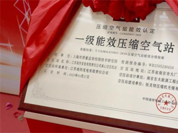 鈦靈特EPC總包項目,榮獲大型“一級能效空壓站”認證